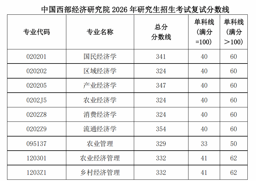 根据学校 2026 年硕士研究生招生考试考生进入复试基本成绩要求,结合我院学科专业特点和生源实际情况,现公布我院各专业复试分数线: