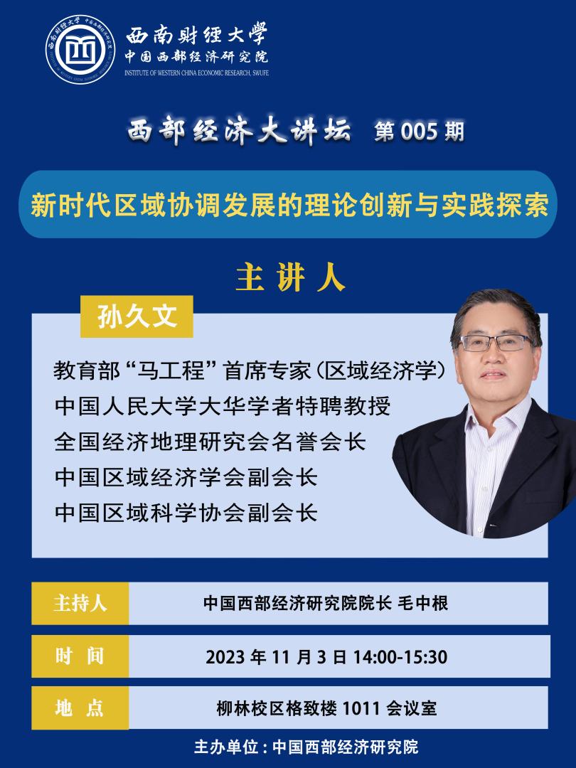 孙久文,中国人民大学应用经济学院大华学者特聘教授、博士生导师,院学术委员会副主任。教育部“马克思主义理论研究与建设工程”首席专家(区域经济学),原区域与城市研究所所长,全国经济地理研究会名誉会长,中国区域经济学会副会长,中国区域科学协会副会长。受聘担任自然资源部《全国国土空间规划纲要》(2020-2035)编制专家委员会专家。研究领域为区域经济理论、区域规划、扶贫开发、城市可持续发展。完成包括国家社科基金重大招标课题在内的各类课题50多项,出版著作30多部,在《管理世界》、《世界经济》、《经济学(季刊)》、《地理学报》、《中国农村经济》等权威期刊上发表论文300多篇。