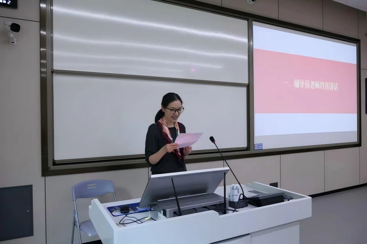 团委书记肖霄老师、团委副书记徐跃辉老师出席会议,研究生会全体成员参会。会议由院研究生会组织部部长蒋怡然同学主持。会议起始,肖霄老师向同学们表达了殷切期待与深切嘱托。她谈到研会的核心定位是由各部门构成的“服务共同体”,强调换届是服务精神的接力与传承,并对新一届研会提出要以学术为魂、以服务为本、以责任为基的三点期望。她表示辅导员团队是研会的坚实后盾,祝愿研究生会的发展越来越好。